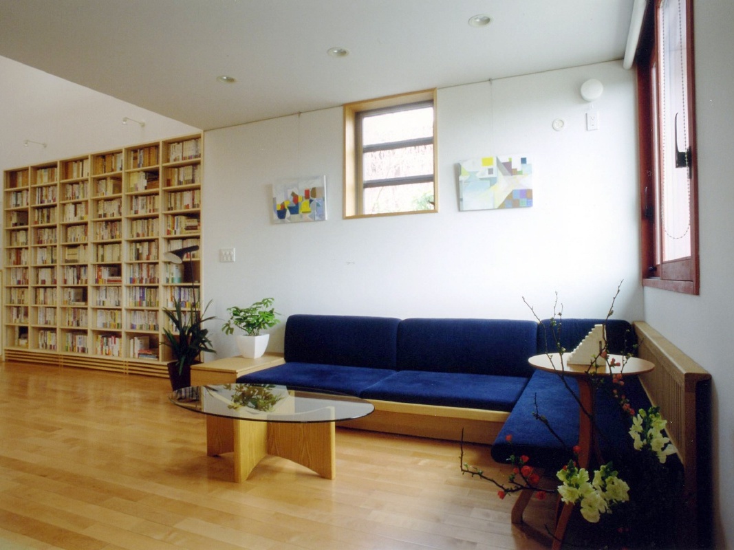 本棚に囲まれた一室空間の家
